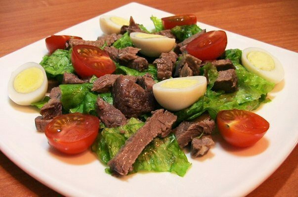 Для соуса: смешать масло, уксус, горчицу, добавить выдавленный через чеснокодавку чеснок, посолить, поперчить.