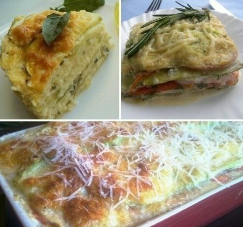1) Форму для запекания смазать оливковым маслом и выложить слой нарезанного тонкими пластинами кабачка.